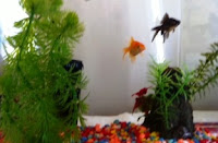 The kids also talked me into a couple of new fish, so we headed off to the fish store as well. The last goldfish we had died about 6 months ago (after a freakishly long life) and they reminded me that I had promised to get them each a new one after 6 months. Why is it they always remember the things that you wish they wouldn't?!?! Here is Sheldon (the black one) and Hannah (the gold one):